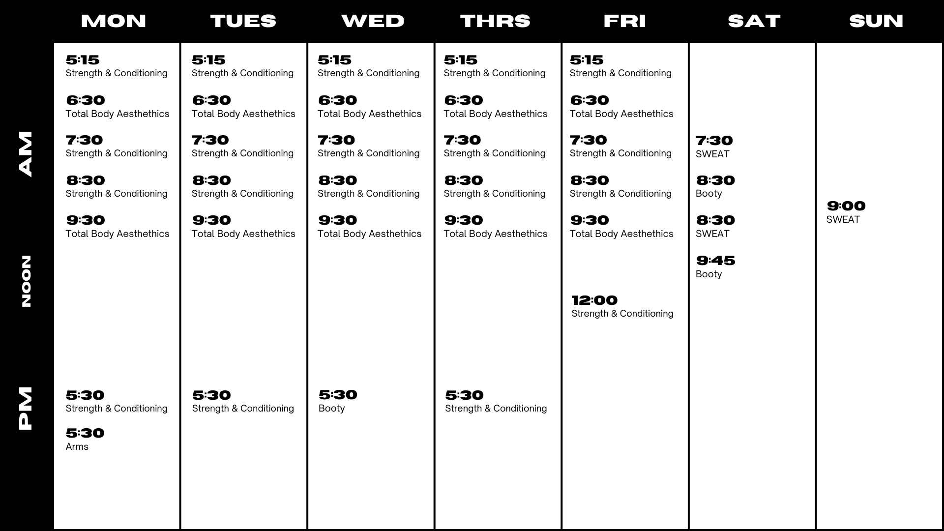 Buy a single class, 5 or 10 classes! Access to our Strength & Conditioning, Total Body Aesthetics, and SWEAT programs only. Recommended for anyone taking 2 classes or less per week and is a great add on to any fitness routine.